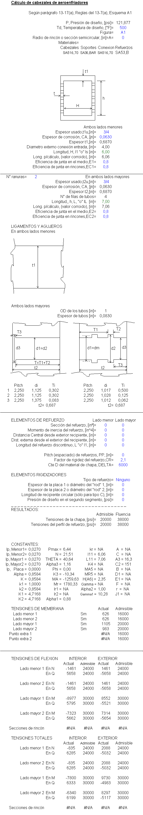 cabezales de aeroenfriadores: Aquí mostramos sólo un sector de la planilla de cálculo de cabezales de aeroenfriadores según el código ASME VIII Div1. Lo sentimos, pero por el momento la subscripción de esta planilla no está disponible. |