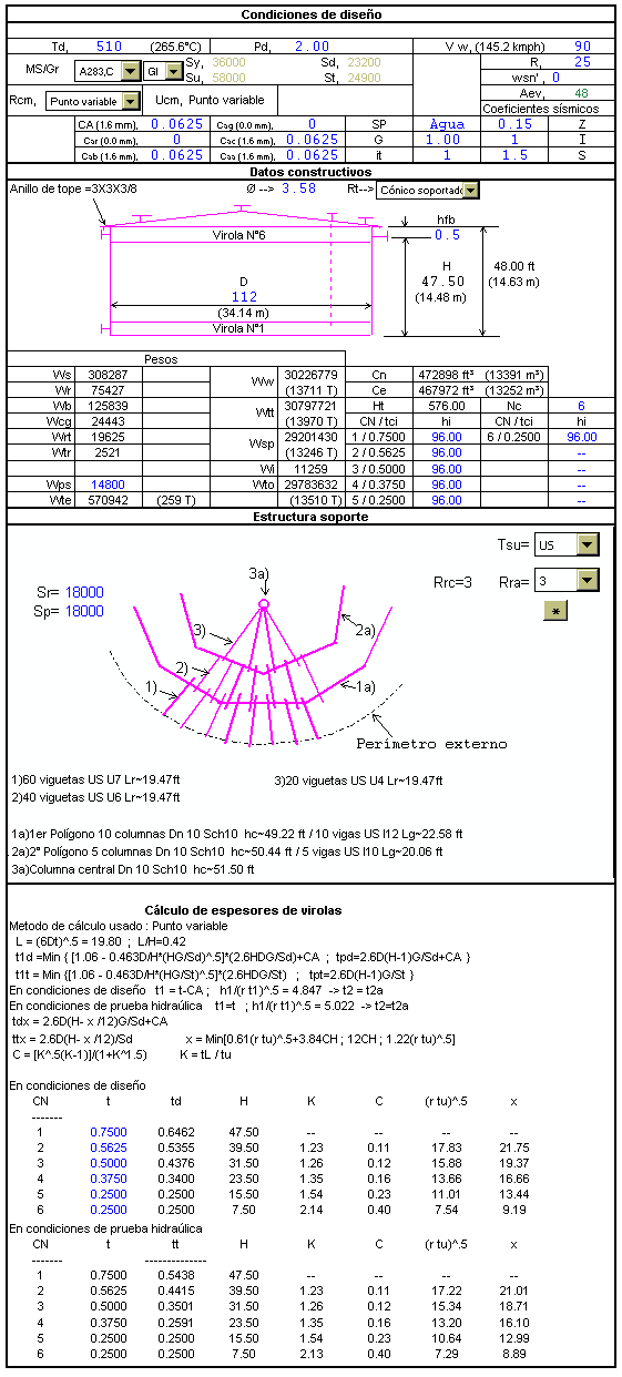 | Cálculo de tanques API: Este es sólo un sector de la salida del cálculo de tanques de stock según norma API. Lo sentimos, pero por el momento la subscripción de esta planilla no está disponible. |