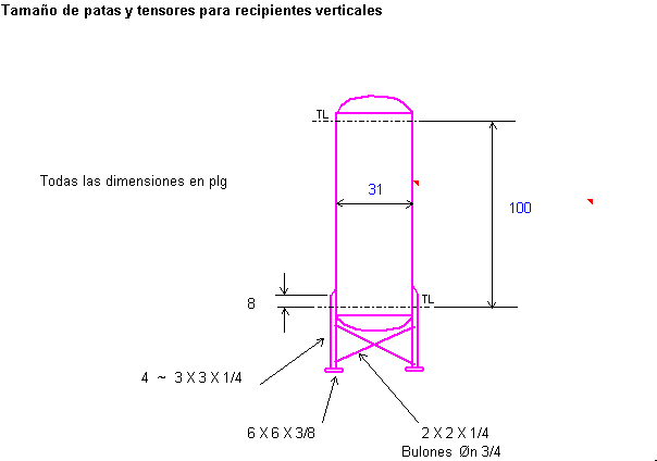 dimensiones de patas soportes para tanques verticales: Aquí podemos visualizar la planilla de patas soportes para tanques verticales. Indicando diámetro y longitud entre tangentes obtendremos las dimensiones sugeridas para las patas y sus refuerzos. Si Ud. es suscriptor puede descargar la planilla cliqueando abajo. |