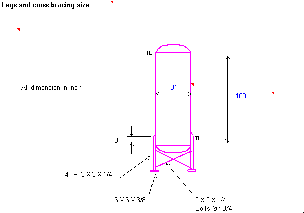 dimensions of legs support for vertical tanks: Here we can see the sheet for legs support for vertical tanks. Indicating diameter and length between tangents will obtain the suggested dimensions for legs and reinforcements. If you are subscriber, click below to download the spreadsheet . |