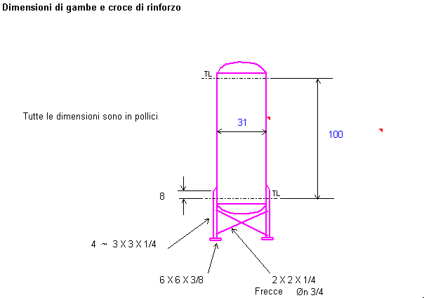dimensioni di gambe di appoggio per serbatoi verticali : Qui noi possiamo vedere il foglio elettronico di gambe per serbatoi verticali. Con il diametro e lunghezza tra tangenti otterranno le dimensioni suggerite per gambe e rinforzamenti. Se Lei è abbonato, clicchi sotto per scaricare il foglio elettronico. |