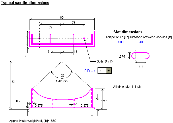 dimensiones de cunas soportes para tanques horizontales: Aquí podemos visualizar la planilla de cunas para tanques horizontales. Indicando diámetro y longitud entre tangentes obtendremos las dimensiones sugeridas para las cunas y bulones. Si Ud. es suscriptor puede descargar la planilla cliqueando abajo. |