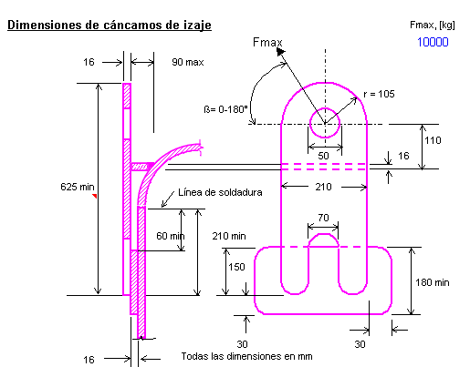 dimensiones de cáncamos de izaje: Aquí podemos visualizar la planilla de cáncamos de izaje. Con la carga máxima a levantar se podrá obtener las dimensiones del cáncamo necesario. Si Ud. es suscriptor puede descargar la planilla cliqueando abajo. |