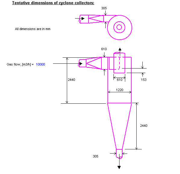 tentative dimensions of cyclones collectors: Here we can see the file of tentative dimensions of cyclone collectors. If you are subscriber, click below to download the spreadsheet . |