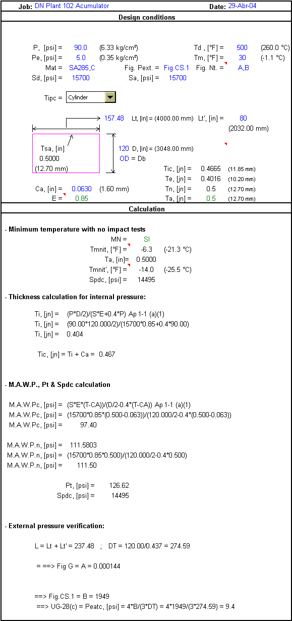 of shells and heads thickness: With this spreadsheet we can calculate the required thickness, by internal and external pressure, of shells and heads according to ASME VIII Div1. Sorry, at the moment the subscription of this file is not available. |