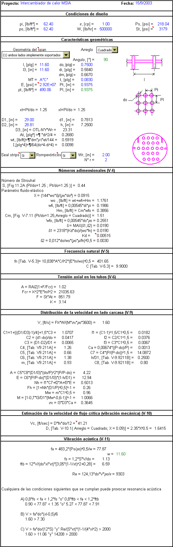 vibraciones en mazos tubulares: Este es sólo un sector de la salida del cálculo de vibraciones en intercambiadores. Lo sentimos, pero por el momento la subscripción de esta planilla no está disponible. |